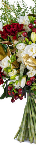 Send season’s greetings far and wide with our Festive Wishes Christmas Bouquet. Styled with the finest, freshest stems to delight the lucky recipient, it includes frilly red carnations, fragrant white freesia, and festive hypericum berries perfectly hand-tied into a Christmas flower arrangement. We’ve added shimmering gold Ruscus for a hint of seasonal sparkle and an abundance of festive foliage to add the finishing touch. Wrapped in your choice of wrapping or a vase, our Festive Wishes Christmas bouquet is the perfect floral gift for those who adore fresh and fragrant blooms.